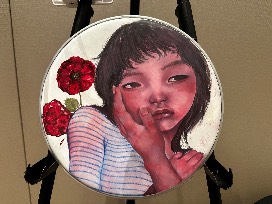 Media: Oil Paint, Oil Pastels, Color Pencils on a drum head