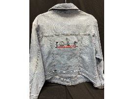 Denim Jacket, custom VGK - Vegas Strong Design. (Oversized Women's size Small included, but can be swapped for M, L, or XL)
