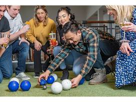 Bring your work crew to a Happy Hour Bowling party at Pinstripes in Norwalk! This complimentary Happy Hour is valid for bowling or bocce for 2 hours for your group of 15 and includes the first round of drinks and exclusive happy hour menu pricing.
