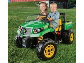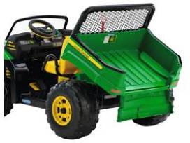 Styled like a real John Deere Gator with iconic green and yellow, it features spacious seating for two children, a functional tilting cargo bed with tailgate for carrying and unloading treasures, and durable wheels for navigating all kinds of terrain. It's the perfect combination of fun and functionality, making it a fantastic gift for any young adventurer.