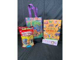 This package contains four child thickets (12 & under) and four general admission tickets to the Fort Wayne Children's Zoo, a $20 gift card to the Fort Wayne Children's Zoo, a reusable tote bag, a package of animal crackers, and one 'Encyclopedia of Animals' book. Tickets expires 12/30/24.