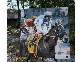 Piece Description: This piece showcases two jockeys on their racehorses. Viewers are invited to experience the motion of the horses, and how both the men and the animals use each other in fruition to be the fastest on the track. This piece was a tribute to the St. Petersburg 13 Ugly Men Derby event in May 2022.
