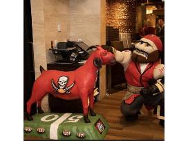 60" L x 48" H x 23" W cast from an architectural stone product and painted to withstand the elements, Tampa Two pays homage to the Greatest of All Time Tampa Bay Buccaneers players and will make a spectacular statement either outside or indoors.