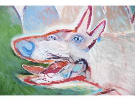 1RUBADOUX, Craig, (American, b. 1937): "Boulder Dog", an ORIGINAL Oil/Canvas, 40" x 48", signed and titled on the front, also titled verso and dated 2003, sold with the original Clayton Galleries receipt from 2005 showing a price paid of $7,600, which conservatively puts todays value at $13,600 and as high as $24,600.