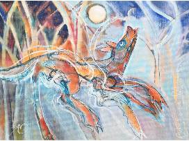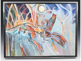 ARTIST STATEMENT: "My work is figurative, abstract and magically mystical. It is a reflection of man's search for meaning, his relationship with himself, his environment and the important people in his life. "While lines, brush strokes and sensuous colour define the object, swirling lines expand beyond the figure, animal or landscape, suggesting movement, flux and change. I strive to keep the work fresh and alive, sometimes to a childlike feeling of abandon. Although I have worked steadily over many decades I continue to experience joy and great satisfaction when a difficult passage in a painting has been resolved successfully. "Many of my paintings are done on gessoed paper. I am attracted to its surface qualities as well as its portability and immediacy. I feel that I can capture the intimate nature of drawing in my oils on paper. "Although my work is very personal, viewers can recognize and identify with the range of feelings that are projected, such as longing, sensitivity, intensity and contemplation. Figures and forms are often distorted or disintegrated. In this process, the painting can communicate more of the essence and internal energy of being. "More recently, I have been drawn to express myself more abstractly. I engage in this process with as much enthusiasm as possible allowing the moment to dictate the outcome. "I draw inspiration from the wonderous creatures in nature such as the warthog, lemurs, lynxes, otters and birds as well as bleached trees on a southern beach, the dark Florida rivers and the craggy Nova Scotia coast."