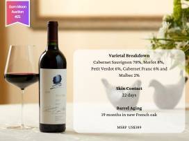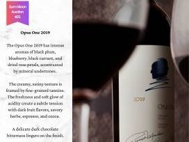 The Opus One 2019 has intense aromas of black plum, blueberry, black currant, and dried rose petals, accentuated by mineral undertones. The creamy, satiny texture is framed by fine-grained tannins. The freshness and soft glow of acidity create a subtle tension with dark fruit flavors, savory herbs, espresso, and cocoa. A delicate dark chocolate bitterness lingers on the finish.