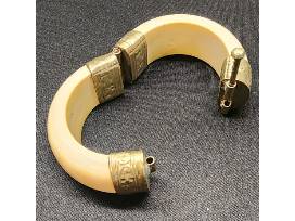 Vintage Bovine Bone Brass (Open) Hinged Pull-pin Bangle