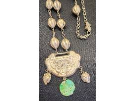Antique Chinese Silver Necklace with Jade Charm