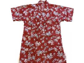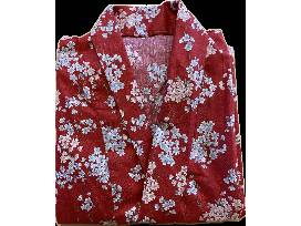 #504 features a vibrant cherry blossom bouquet print on the striking homemade red kimono evoking a sense of timeless cultural artistry.