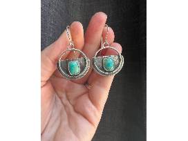 The "wild soul" earrings have a sophisticated look with a bit of a Boho flair. Dress them up or down. Each pair is OOAK Artisan made with unique texture patina with the turquoise as the centerpiece. No two pairs are alike.