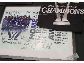 Show your love of the PWHL with this Championship t-shirt size L and signed photo!