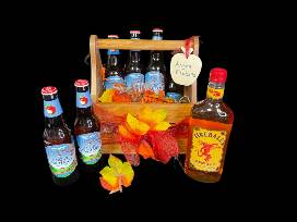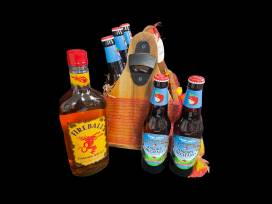 Ignite your celebrations with this fiery basket featuring a six-pack of Angry Orchard Hard Cider and a 750 ml bottle of Fireball Cinnamon Whiskey, all presented in a wooden six-pack carrier crate with a built-in bottle opener. It also includes a sleek Anchor Hocking shot glass for the perfect pour. Ideal for sipping, mixing, or gifting, this basket is a seasonal crowd-pleaser!