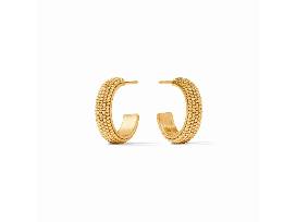 Delicate beads decorate the edges of these sculpted gold hoops.