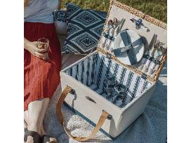 With the Espalande Picnic Basket for two, you're all set for a romantic couple's wine and cheese picnic. A classic yet modern take on the vintage-chic handwoven picnic basket, the Espalande is a small picnic basket that stands out with its unique canvas and wood frame.