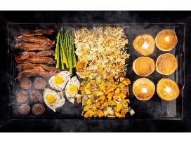 The Traeger Flatrock Flat Top Grill opens up a whole new world of griddling, frying, steaming, and sauteing for the backyard chef! The Flatrock offers the versatility to fire up every meal with three separate cooking zones letting you simultaneously cook at different temps. Explore new flavor frontiers and enhance your patio cookspace with the Flatrock.