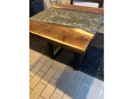 - Custom made wooden end table by Terry and Shelly DeKnikker