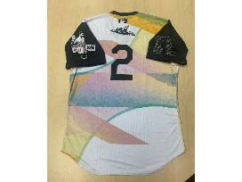 Game-worn, autographed jersey by outfielder Victor Bericoto.