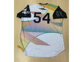 0Game-worn, autographed jersey by right-handed pitcher Wil Jensen.