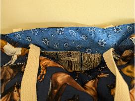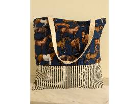 This gorgeous tote features cotton fabrics featuring a variety of dark brown horses on a midnight blue background. Tote bag also comes with an inner pocket for quick access to your favorite items.