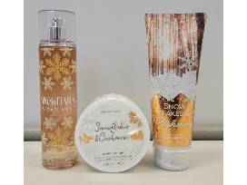 - Bath and Body Works Snowflakes and Cashmere 8oz fragrance mist, 6.5oz body butter, 8oz ultra shea body cream