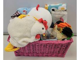 - Adorable, soft stuffed chicken approximately 13" x 8"