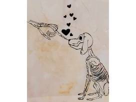 - Loving yet spooky hand drawn skeleton dog and skeleton hand "nose boop"