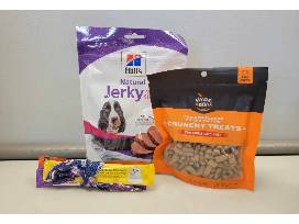 - Bag of dog treats and bag of cat treats with some likable delectables