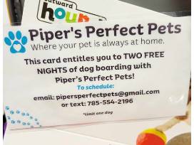 - Two nights of free boarding with Piper's Perfect pets
