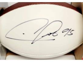 This Wilson football, signed by none other than Chris Jones, the Chiefs' dominant defensive tackle, is a true collector's dream. Jones is a force to be reckoned with on the field-a three-time Super Bowl champion, five-time All-Pro member, and five-time Pro Bowler. He even holds the NFL record for the most consecutive games with a sack (11)!