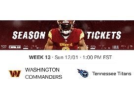 Get ready to cheer on the Washington Commanders as they take on the Tennessee Titans in an action-packed NFL game! You and three friends will head to Landover, MD, for an unforgettable day of football excitement. Here's your chance to be part of the thrill and energy of a live NFL game.