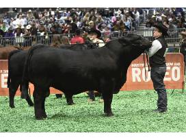 Titleist son and reigning 2024 IBBA Show Bull of Year - Origins Knockout owned by MP Brangus, GKB Cattle