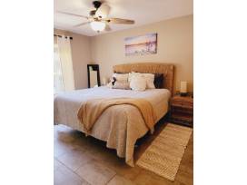 Enjoy all the amenities this three bedroom, two bath home with a sleeping porch and amazing dock, has to offer. There is something for everyone! Enjoy swimming and rope swinging in the sandy bottom lake June by day and grilling and watching beautiful sunsets by evening. The home also has a sleeping porch with a daybed and trundle and a set of bunk beds. The dock offers an ice maker, a mini-refrigerator, a sink and a gas grill. Bring you boat and enjoy all the watersports.