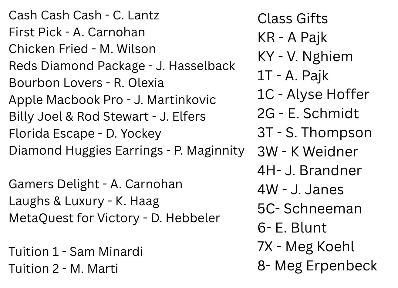 Silent Auction/Raffle/Class Gift Pick Up at Murphy Hall: