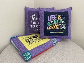 1Embrace warmth and community with the Wrapped Up in Inclusion package! This heartfelt bundle features a beautifully handmade Best Buddies quilt by Burt Rose, perfect for cozy nights in. Accompanying the quilt are two charming Best Buddies handmade pillows, adding a touch of comfort and style to any space. Don't miss this opportunity to support inclusion and take home these unique, artisan pieces!