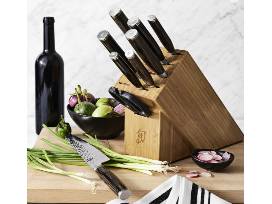 The Shun Premier 8-piece Professional Set includes everything you need for professional-level cooking. You get the three most-needed kitchen knives-the Shun Premier 8-in. Chef's Knife, the 4-in. Paring Knife, and the 6.5-in. Utility Knife. You also get the nimble 5.5-in. Premier Santoku, handy 9-in. Premier Bread Knife, and elegant 9.5-in. Premier Slicing Knife. There's also a Premier Combination Honing Steel to help you maintain your edge. Everything fits in our 11-Slot Bamboo Block with four open slots, including one to accommodate a handy pair of kitchen shears.