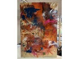 This canvas was used as the drop cloth under the EC Art Easel. The splatters, drippings and scribbles were made by each student in early childhood. Mrs. Russell stretched and mounted the canvas and sealed it with resin to make it ready for your home.