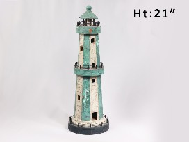 Weathered-looking decorative lighthouses will be a great addition to your beach-themed decor. 21 inches in height.