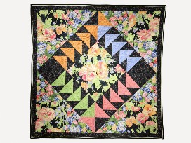 Beautiful professionally-pieced and quilted springtime floral quilt. This quilt would make a great wall hanging! 48" x48". Cotton fabric and batting.