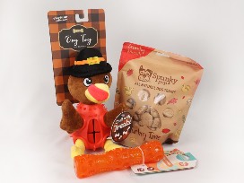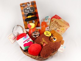 Celebrate the holiday that marks what you are most thankful for, like your canine fur baby, with this basket which includes: