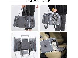 A 4Pet Soft Cat Carrier Airline Approved, Collapsible Cat Carrier Bag with zipper lock and breathable mesh openings for car, indoor and outdoor travel use.