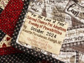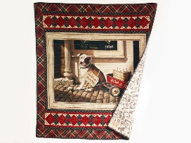 You don't have to remember the Little Rascals to love this image of their dog Petey. At 52" x 47" this adorable, versatile little quilt featuring Petey pulling a Radio Flyer wagon and advertising Lemonade for Sale will steal your heart! Made from quilt shop quality cotton fabrics and batting this sepia style panel print is highlighted by two rows of on-point black and red print squares and a plaid border, and would look equally terrific hanging in an office/study/den or a child's room. The Lemonade Stand theme carries through to the backing and the attached handing sleeve.