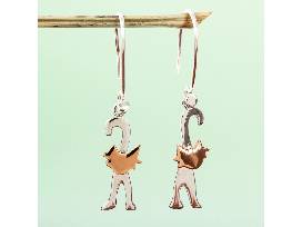 Lithe and lovely, cats come to life in polished silver, mined in Taxco, Mexico. Guillermo Arregui gives them faces of radiant copper and places them on dangle earrings. The friendly kittens dance delightfully on sterling hooks.