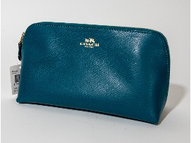 Teal Coach Leather Cosmetic Case