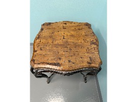 Wood topped, metal legged table. Size 25" L x 25" W x 25" H.
