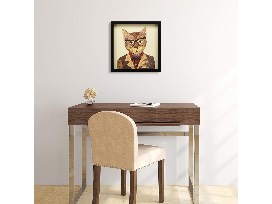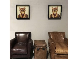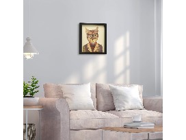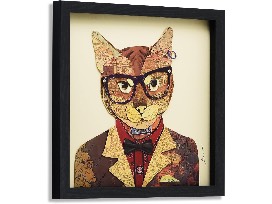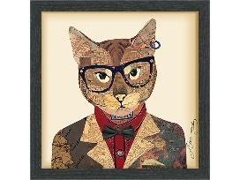 Funky 2 Dimensional Collage by Alex Zeng. Framed Graphic Cat Wall Art
