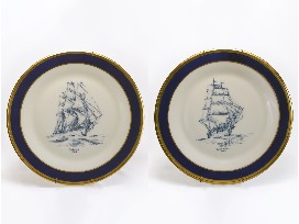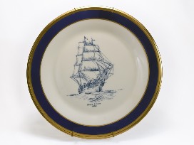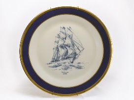 China Plates with Ship Design (2). Lenox Galatea 1854. Lenox Black Pearl 1856. 10 1/2" Diameter. Gold Rim. Ready to hang. Vintage