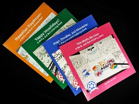 Let your creativity spill out, reduce your stress, and enjoy these four coloring books filled with fun original artwork by Binky and Bell.