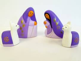 This charming ceramic nativity set from Peru showcases the Holy Family with two traditional llama figures, reflecting the unique artistry and cultural heritage of Peru. Hand-painted in elegant purple and white tones, the tallest figure stands at 4 inches, making this set a distinctive and meaningful addition to any holiday collection.