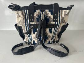 Blk Leather Indigo Stripe Bag