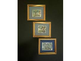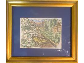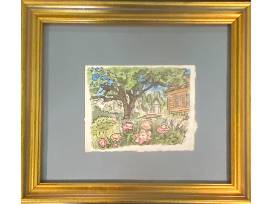 3 Views of the FloGris, 1, 2, 3 by Samuel Parker Swap pen, ink, and watercolor, 3.5 x 2.75 inches, 7 x 6 inches framed. Samuel Swap is an Illustrator and art teacher living in Middletown, CT. Inspired by his childhood favorites of Calvin and Hobbes (Bill Watterson), Ispy (Walter Whick) and Where's Waldo? (Martin Handford), Sam strives to create lush, busy worlds full of goofs and gaffs, pulling from several comedic influences, from Monty Python to Arrested Development. Sam is equally inspired by his main muse and cat, Chatrois, and the many students he has been so lucky to teach as an Educator at the FloGris Museum.